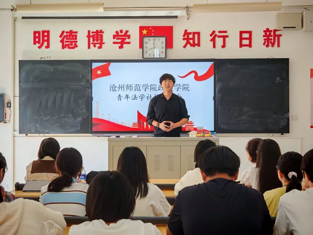 为总结法学社过往工作成果,传承法治初心与社团精神,选拔并组建新一届核心团队,为社团发展注入新鲜血液。2025年9月26日,青年法学社于政史学院沧兴教学楼16教开展换届大会。本次活动由政史学院副院长霍凤娥、24级政史学院辅导员刘晴出席,青年法学社社长吴佳琦主持,青年法学社成员参加。
