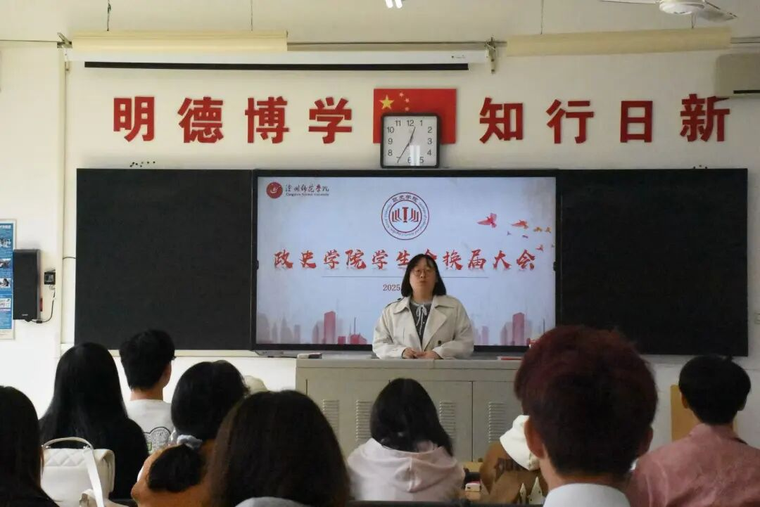 此次政史学院学生会换届大会的圆满落幕,既是对过往一年学生会工作成果的系统梳理,更是对未来一年学生服务方向的清晰擘画。相信新一届学生会骨干必将以昂扬奋进之姿与求真务实之精神,勇担时代使命、凝聚青春力量,引领全院学子同向而行、携手共进,为学院的高质量发展持续注入鲜活且源源不断的青春动能,共同谱写政史学院学生工作与学生干部队伍建设的崭新璀璨篇章。