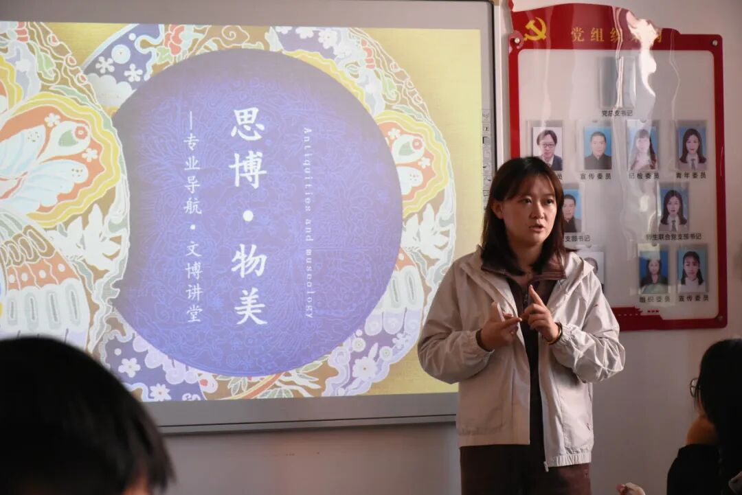 讲座中,韩梦瑶老师以生动的语言,从专业概况、课程体系、实践教学到升学就业,为同学们进行了系统梳理与深入剖析。在专业发展模块,韩老师结合当前政策与行业数据,阐述了在国民文化需求升级的背景下,考古文博专业的高校布局正持续扩大,她还详细解读了人社部对高技能人才的政策支持,勾勒出本专业广阔的发展前景;在讲解基础课程时,韩老师娓娓道来历史学、艺术学、考古学与博物馆学等主干学科间的内在关联,并列举了各方向的核心课程,她还结合自身丰富的实践经验举例说明,课堂氛围十分活跃;谈及理论实践,韩老师分享了田野考古和博物馆实习的趣闻,鼓励同学们主动走进博物馆,积极参与学术讲座与创新创业项目;最后在升学就业部分,韩老师客观分析了本科毕业生的多元去向,涵盖对口单位与相关行业,既坦言就业压力,也指明发展态势,她特别强调了继续深造的优势,鼓励大家夯实专业基础,为未来职业发展铺就坚实道路。